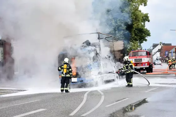 Zwei Amazon-Transporter brennen in Hoppegarten aus