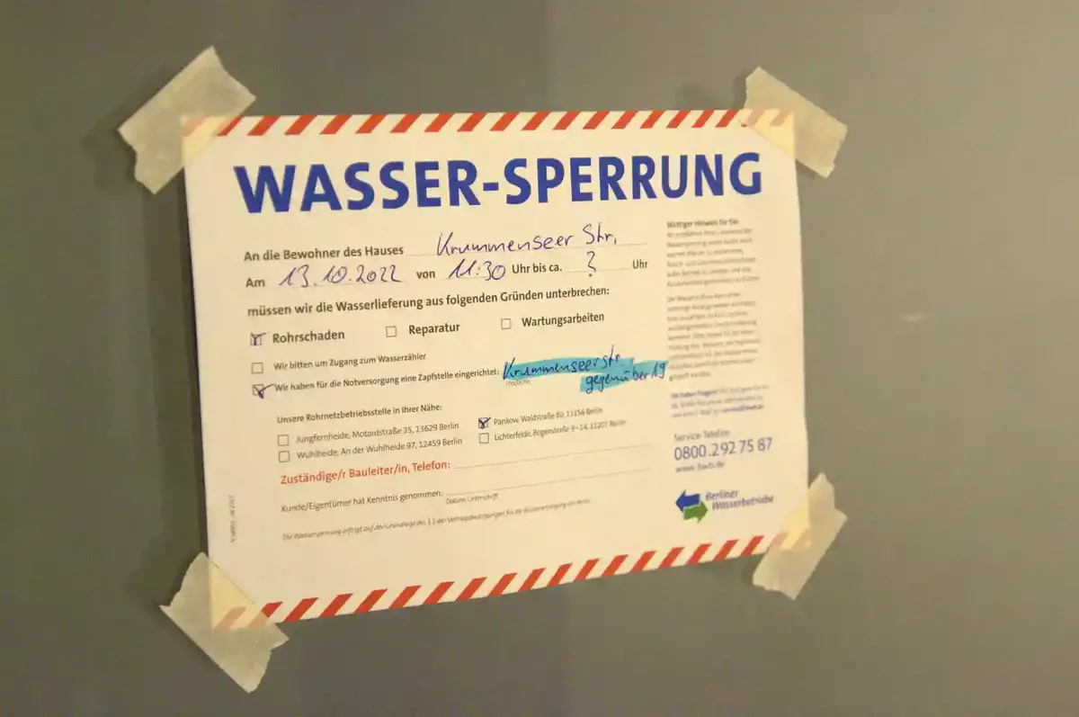 Um die betroffenen Anwohnerinnen und Anwohner weiterhin mit Wasser zu versorgen, wurde eine temporäre Notzapfstelle gegenüber der Krummenseer Straße 19 eingerichtet.
