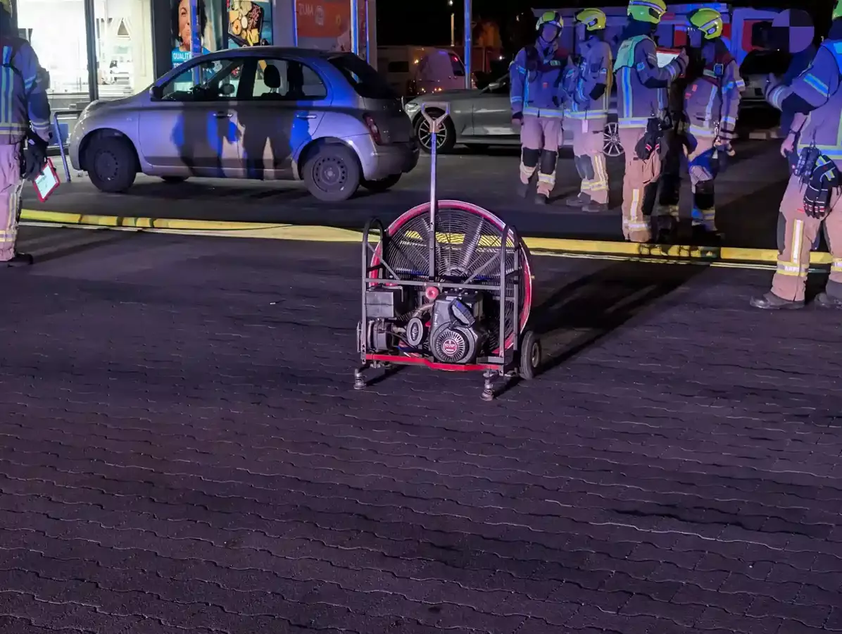 Um mögliche Gefahren für Personal und später Einkaufende auszuschließen, setzte die Feuerwehr wasserbetriebene Lüfter ein. Die Einsatzkräfte leiteten das ausgetretene CO₂ kontrolliert über die Lieferzone ins Freie ab und belüfteten den Markt intensiv.