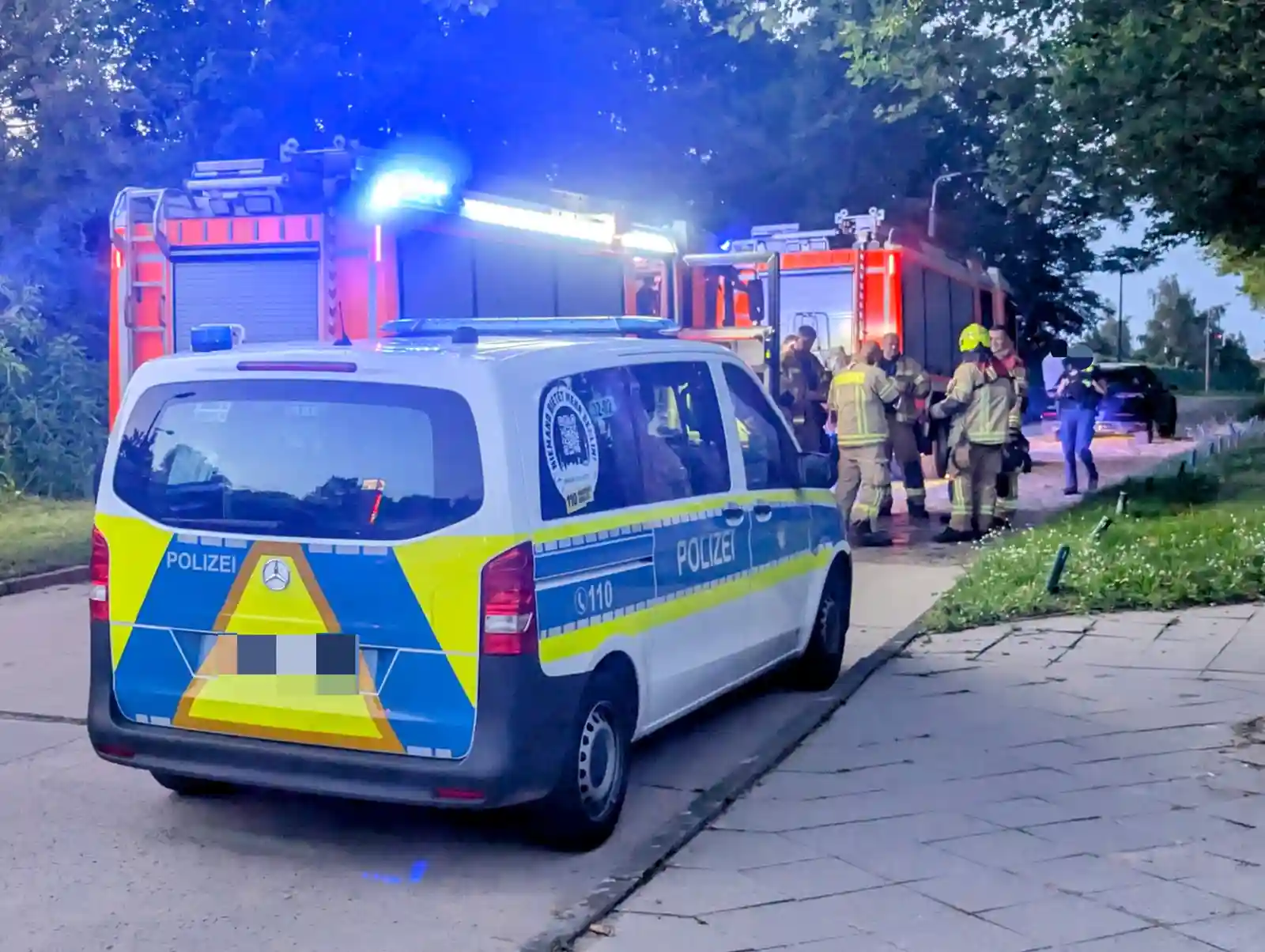Nur rund 15 Minuten später, gegen 21.45 Uhr, richteten sich die nächsten Notrufe an die Leitstellen: Passanten hatten Flammen an einem geparkten Lastwagen gegenüber dem U-Bahnhof Elsterwerdaer Platz bemerkt. Als erste Kräfte traf die Polizei ein. Die Beamtinnen und Beamten setzten einen Feuerlöscher ein und konnten die Flammen so weit eindämmen, dass sich der Brand nicht weiter ausbreitete.