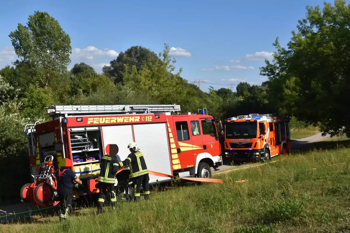 Vegetationsbrand im Eichepark: Feuerwehr löscht Brand in schwierigem Gelände