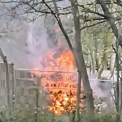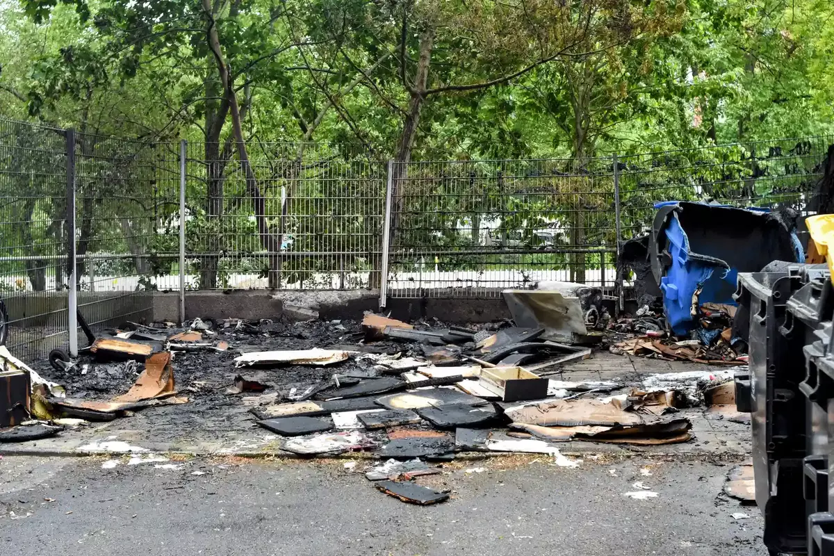 Lichterlohe Flammen auf einer Müllstandsfläche in Fennpfuhl
