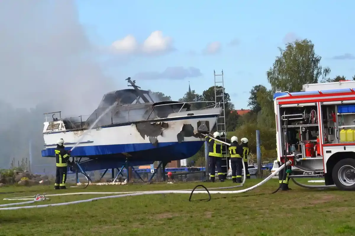 Boot in Flammen: Feuerwehreinsatz im Dömitzer Hafen