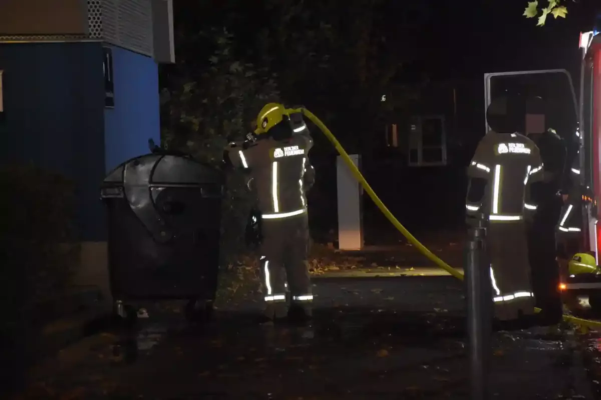 Vor Ort stellten die Einsatzkräfte einen brennenden Müllcontainer fest. Dank des schnellen Eingreifens konnte verhindert werden, dass die Flammen auf das Gebäude der Kindertagesstätte übergriffen. Personen kamen bei dem Einsatz nicht zu Schaden.