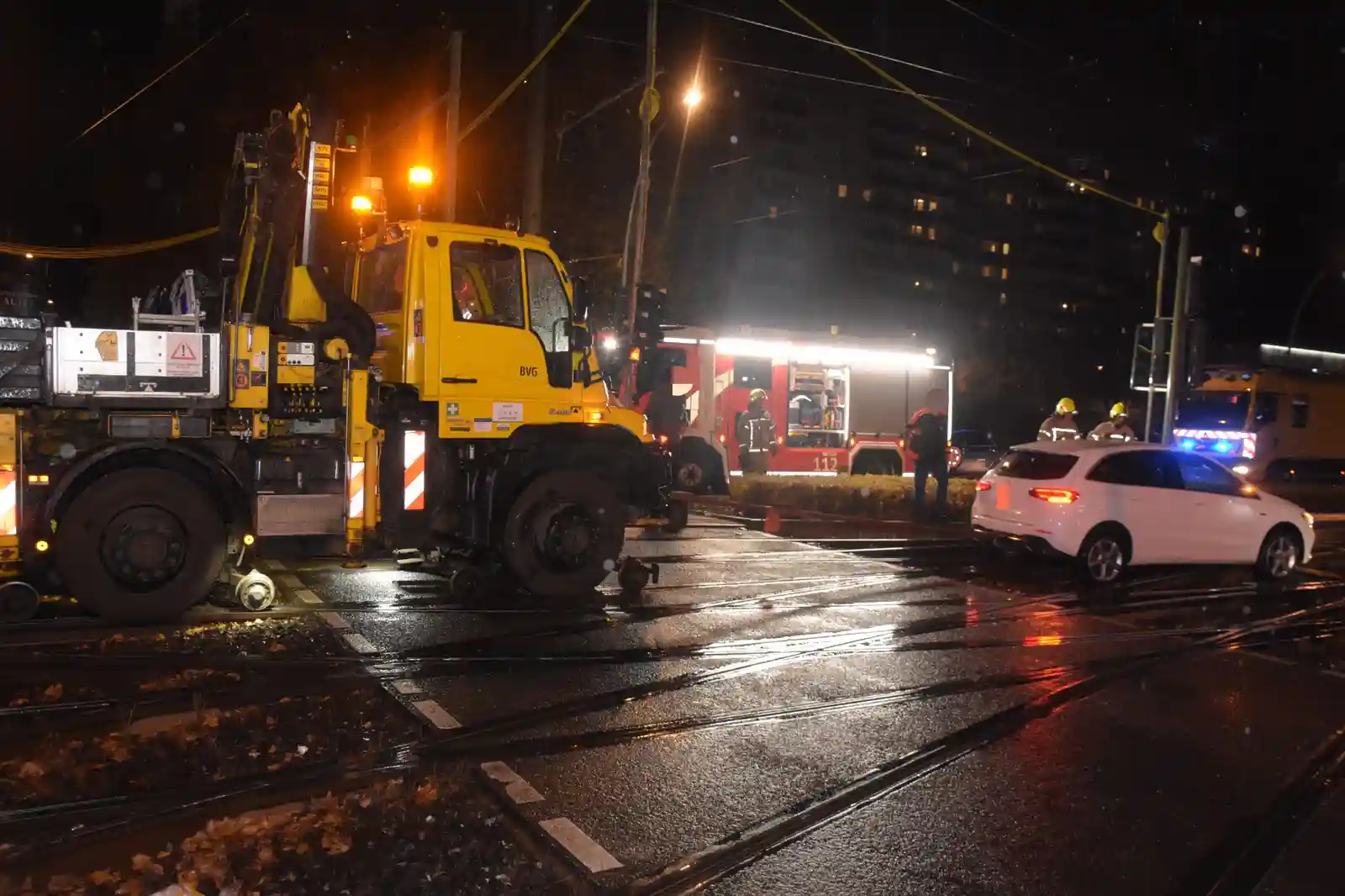 Ein wenig später rückten die Einsatzkräfte erneut aus. In der Hansastraße in Berlin-Weißensee, in Höhe des Stadions Buschallee, geriet abermals ein Mercedes in das Gleisbett. In diesem Bereich ist die Straßenführung derzeit aufgrund einer Baustelle verschwenkt. Aus bislang ungeklärter Ursache fuhr der Fahrer in den Gleisbereich. Die Feuerwehr übernahm auch hier die Bergung des Fahrzeugs.