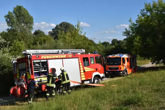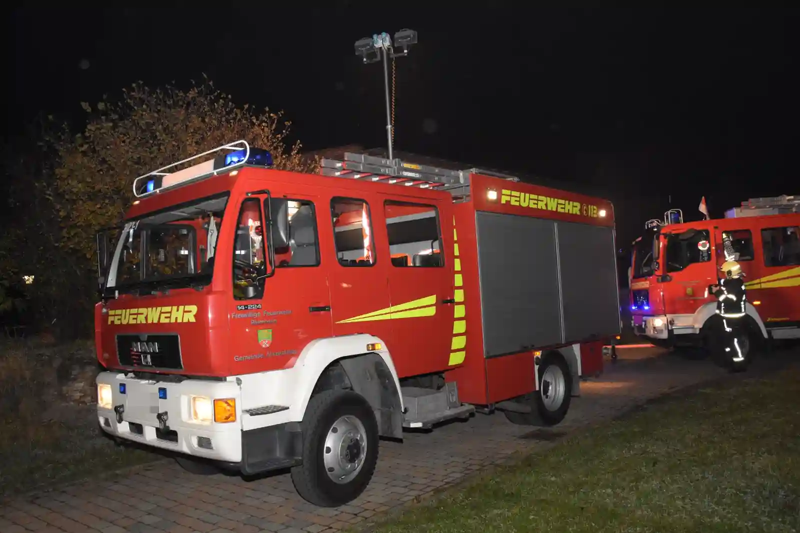 Nur wenige Minuten später trafen mehrere Löschfahrzeuge der Freiwilligen Feuerwehren am Einsatzort ein. Vorsorglich wurde auch ein Rettungswagen bereitgestellt. Nach Angaben eines Einsatzleiters brannte beim Eintreffen der Kräfte ein hölzernes Scheunentor.