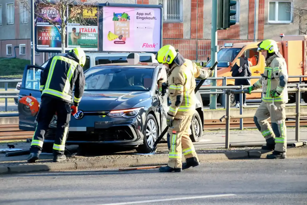 VW nach Unfall in Marzahn in Straßenbahnhaltestelle geschleudert – Fahrer verletzt