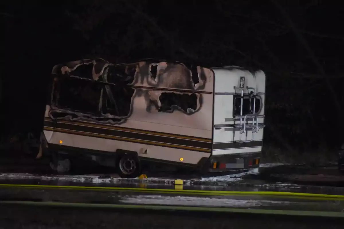 Der Wohnwagen wurde durch den Brand größtenteils zerstört. Verletzt wurde nach bisherigen Erkenntnissen niemand.