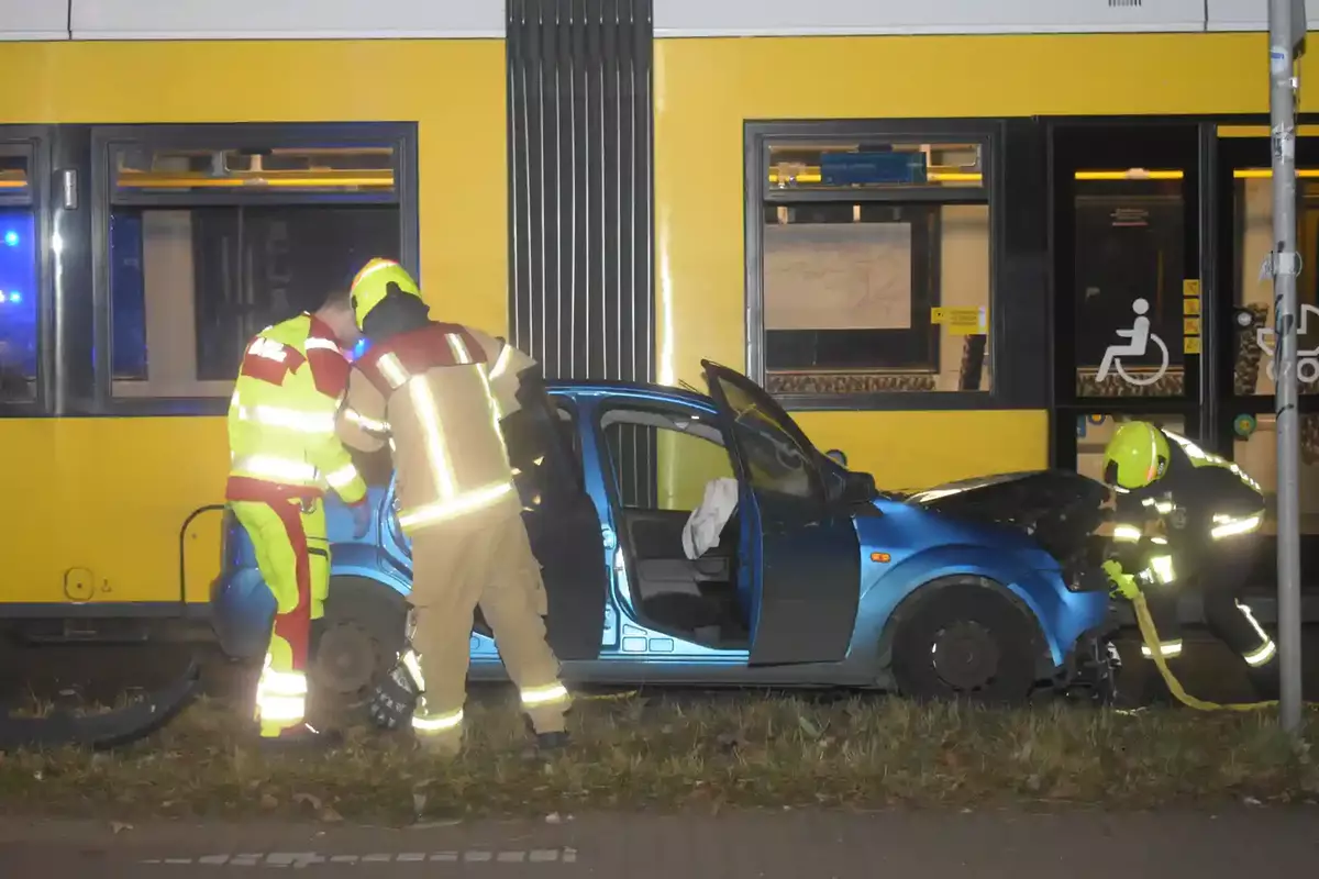 Durch die Wucht des Aufpralls wurde der Pkw im Frontbereich stark beschädigt und mehrere Meter von der Straßenbahn mitgeschliffen. Der Fahrer des Ford Fiesta wurde dabei glücklicherweise nicht in seinem Fahrzeug eingeklemmt. Er wurde noch an der Unfallstelle von einem Notarzt medizinisch versorgt und anschließend mit der Verletzungskategorie "Gelb" in ein Krankenhaus transportiert.