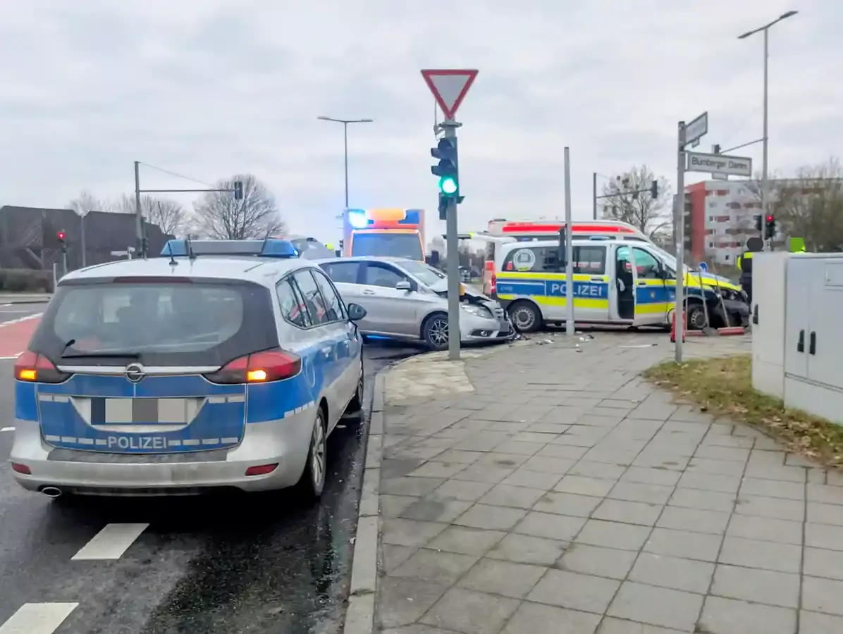 Am Neujahrstag kam es kurz nach 13 Uhr an der Kreuzung Blumberger Damm/Cecilienstraße in Biesdorf zu einem Verkehrsunfall zwischen einer Mercedes A-Klasse und einem Einsatzfahrzeug der Polizei.