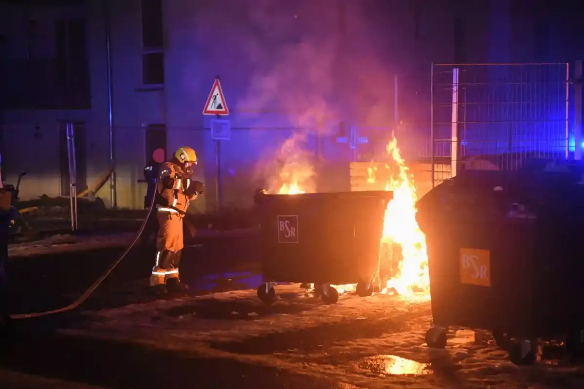 In Hellersdorf brannten in einer Nacht gleich zweimal Müllcontainer – die Feuerwehr konnte Schlimmeres verhindern.