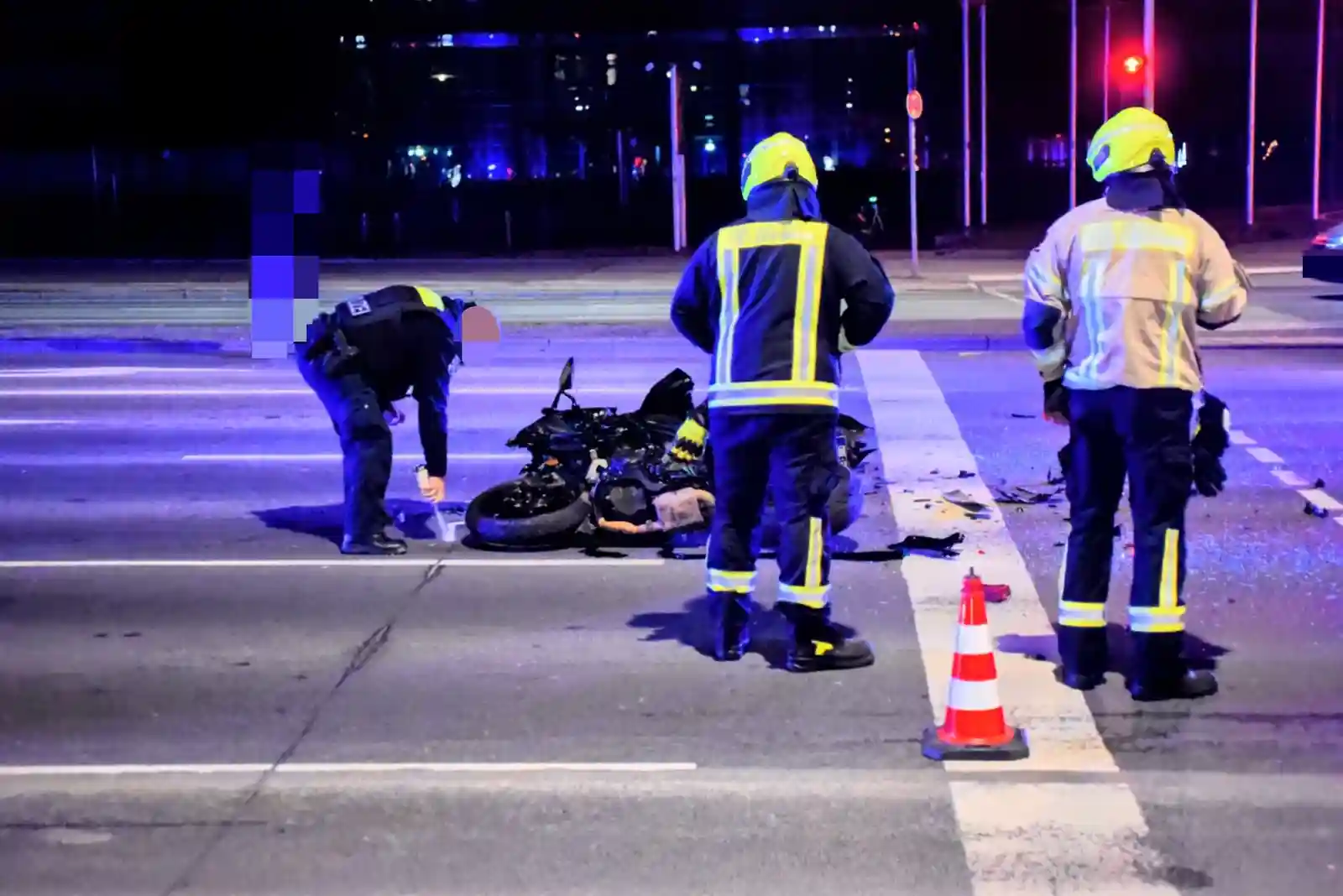 Am Sonntagabend gegen 23.40 Uhr kam es auf der Landsberger Allee stadteinwärts auf Höhe des Arendswegs im Berliner Ortsteil Berlin-Lichtenberg zu einem schweren Verkehrsunfall zwischen einem Motorrad und einem PKW.