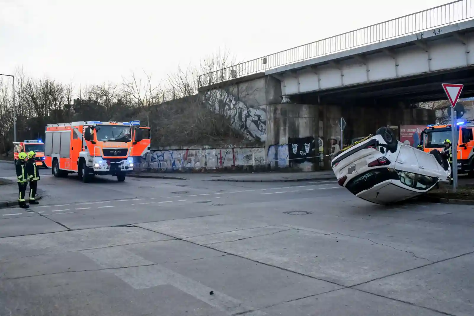 Schwerer Verkehrsunfall in Marzahn: Auto überschlägt sich an Kreuzung
